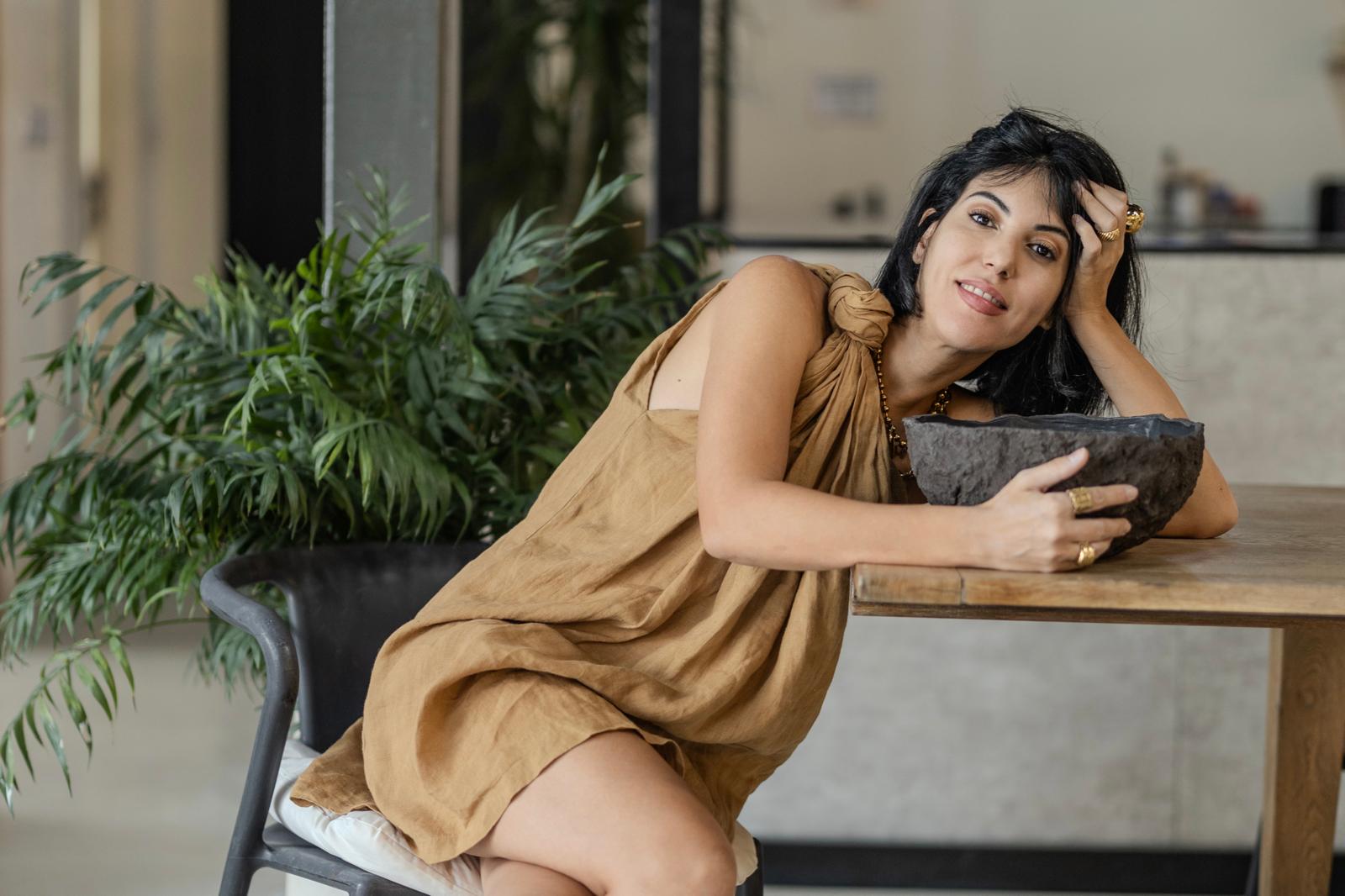 Today, each piece she crafts expresses a return to Mediterranean roots, blending authenticity, raw materials, and a warm aesthetic.